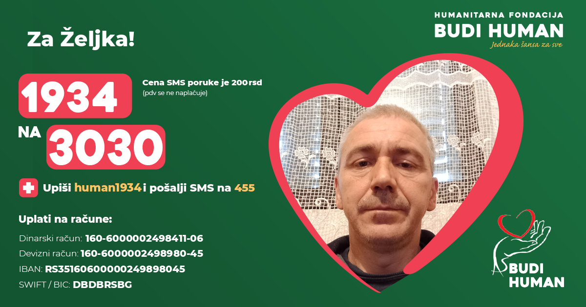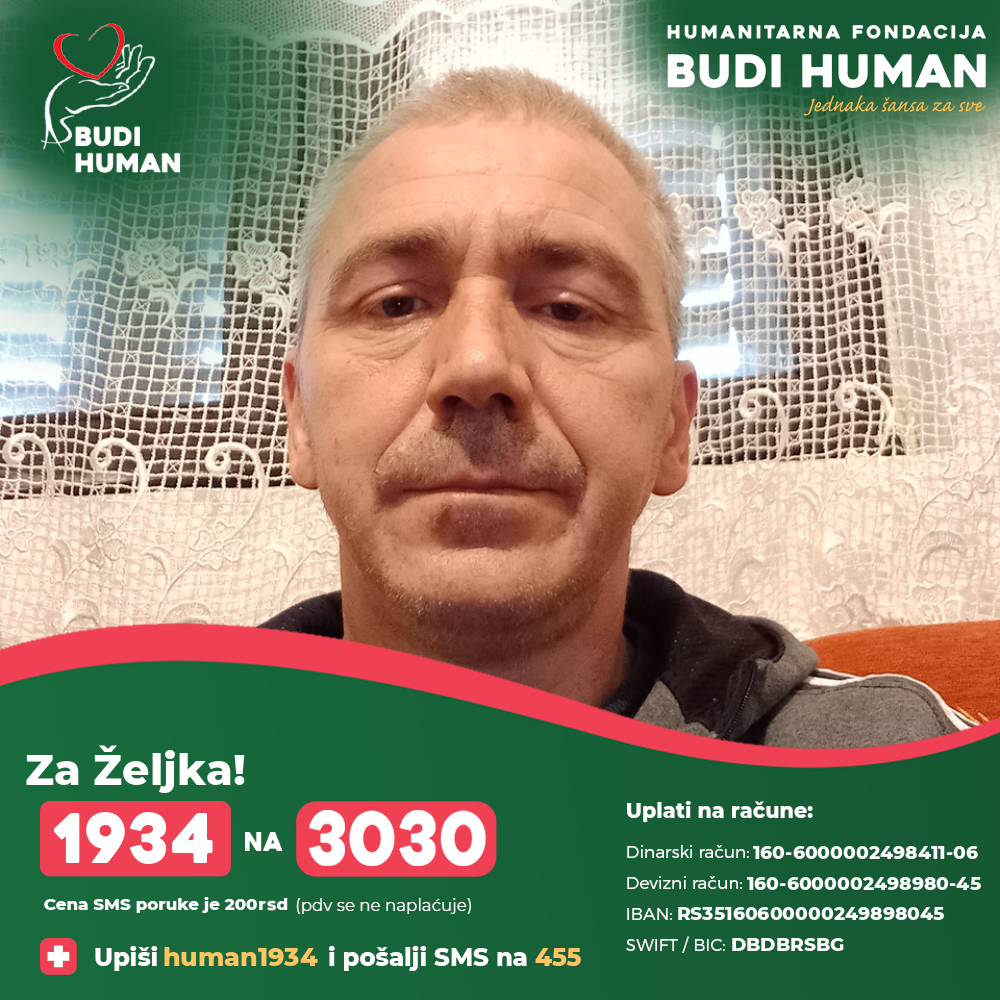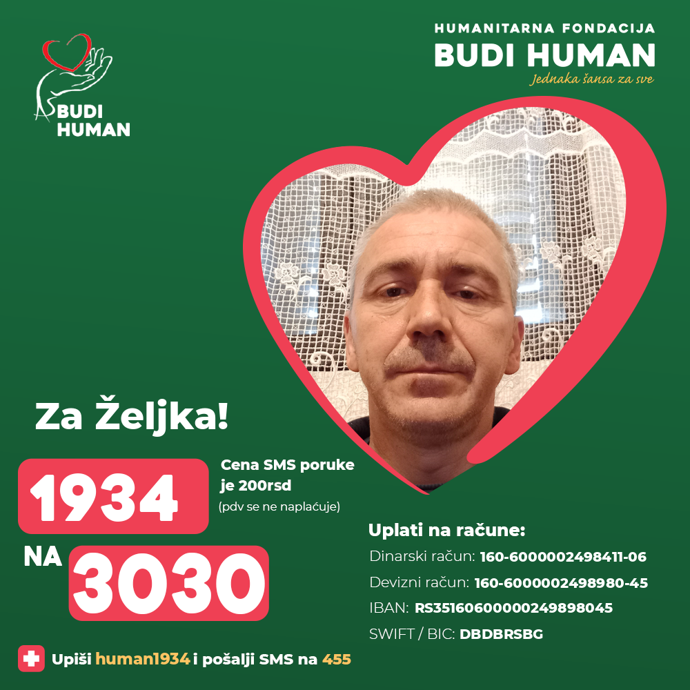 Nastavak lečenja u zemlji i inostranstvu zahteva značajna finansijska sredstva koja Željko nije u stanju da samostalno obezbedi, pa se mole svi ljudi dobre volje da pomognu svojim donacijama kako bi se potreban iznos prikupio u najkraćem roku.