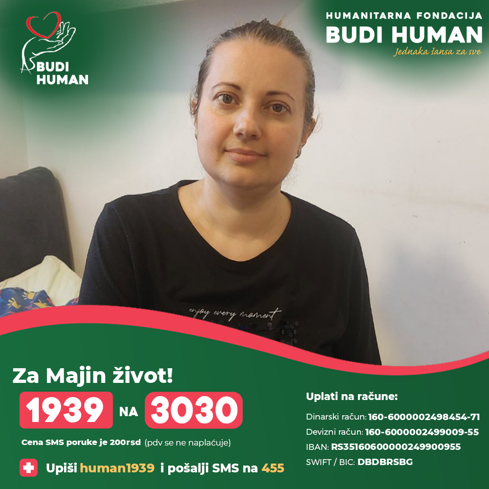 S obzirom da ovaj vid lečenja iziskuje visoke troškove koje porodica nije u mogućnosti da samostalno obezbedi, Maji je potrebna pomoć svih ljudi dobre volje u vidu donacija.