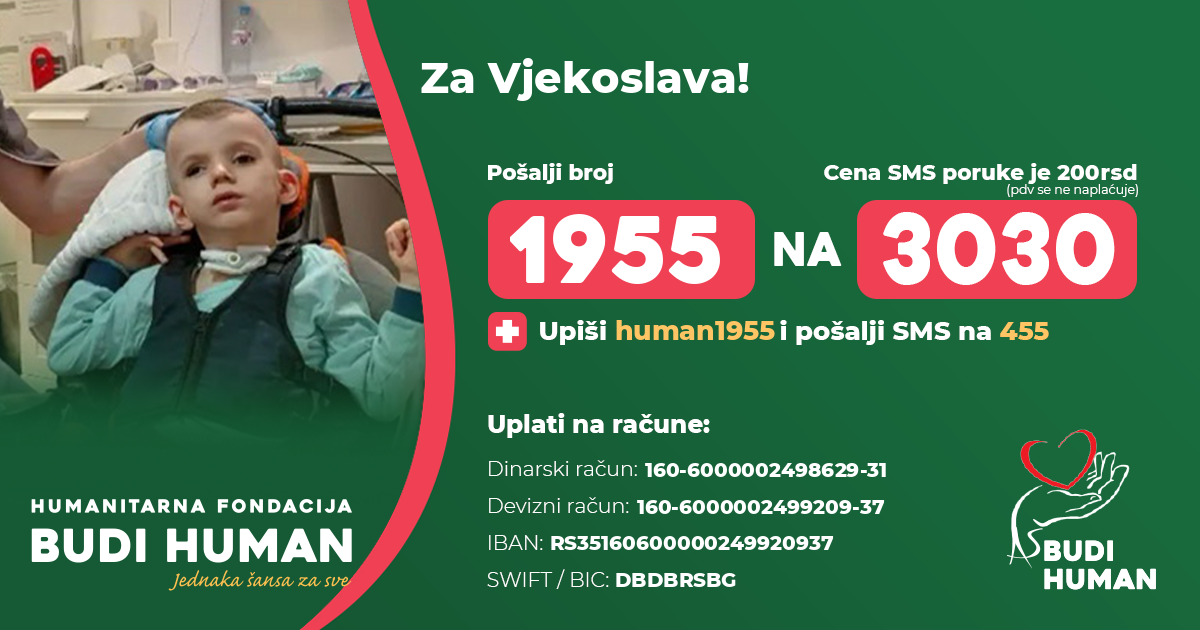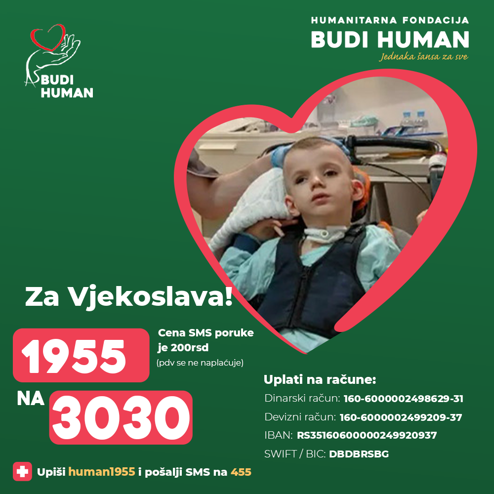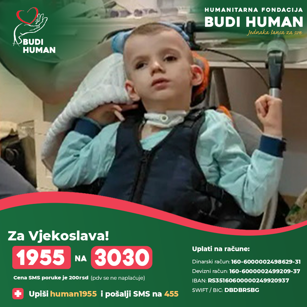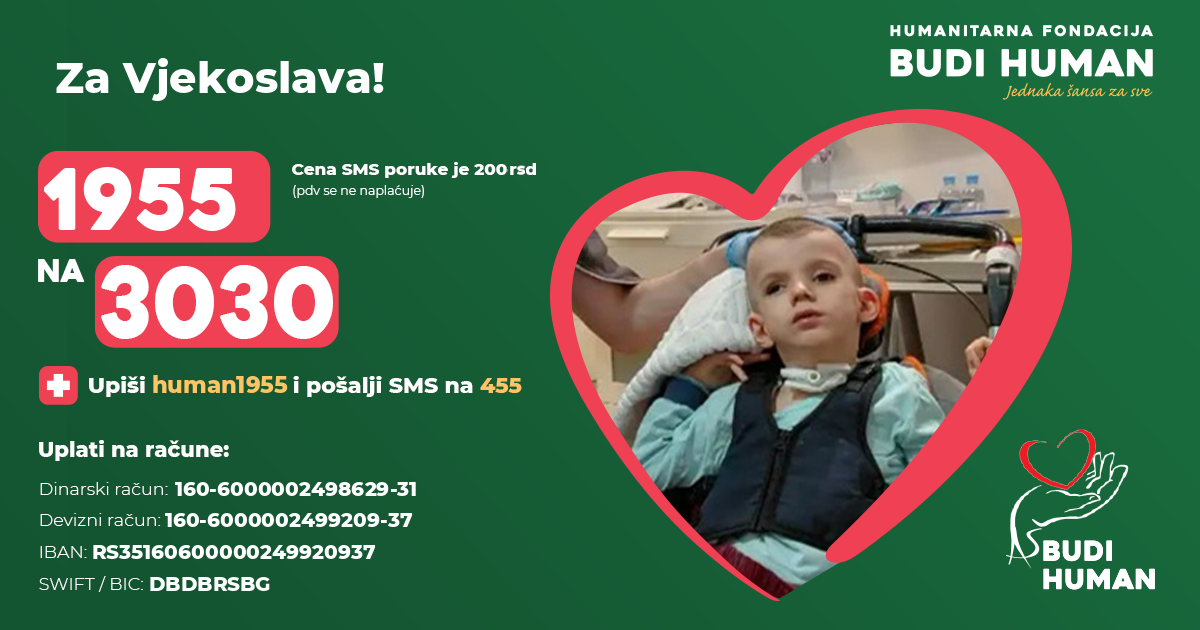 S obzirom na težinu njegovog zdravstvenog stanja i visoke troškove lečenja, porodici je potrebna pomoć svih humanih ljudi kako bi Vjekoslav dobio adekvatnu negu, terapije i šansu za napredak.