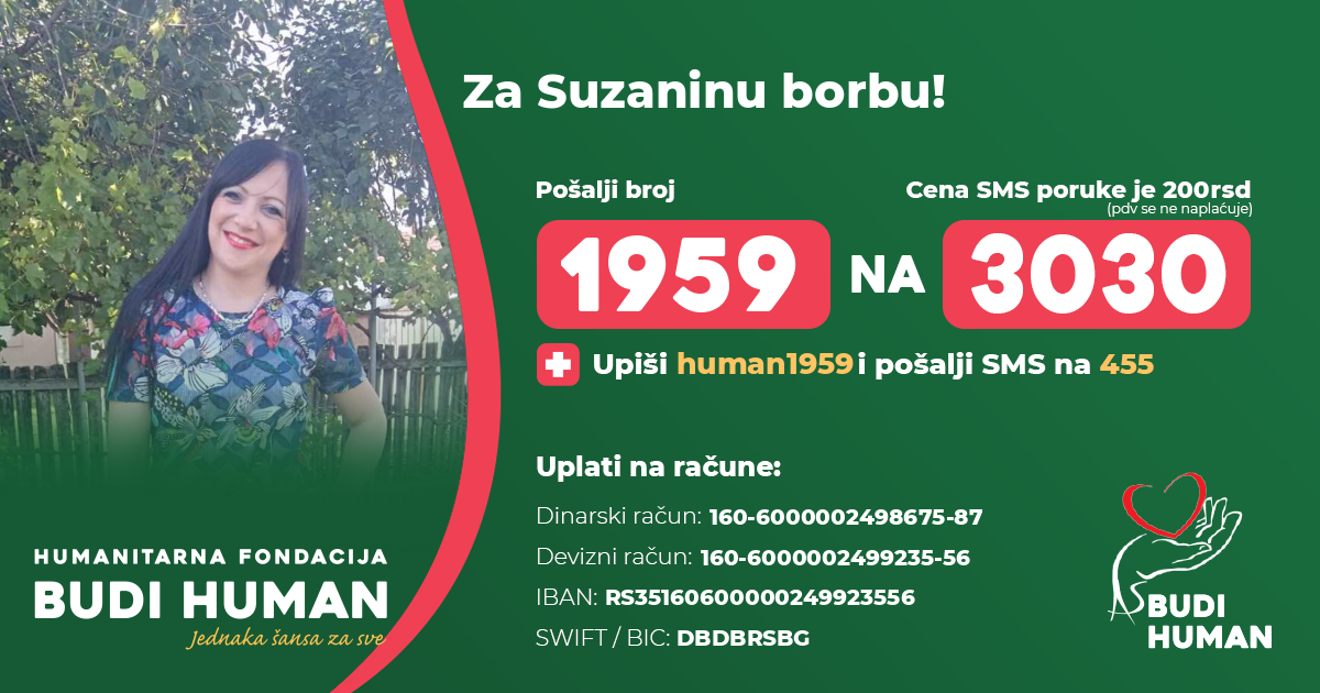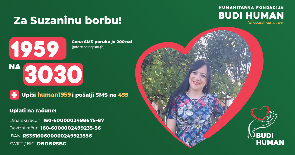 prikuplja novčana sredstva za Suzanu Žižić-Aničić (1985)