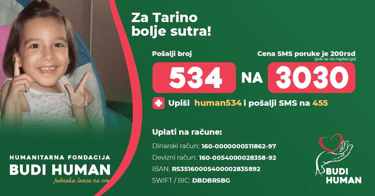 Za Tarino bolje sutra! Budimo humani!