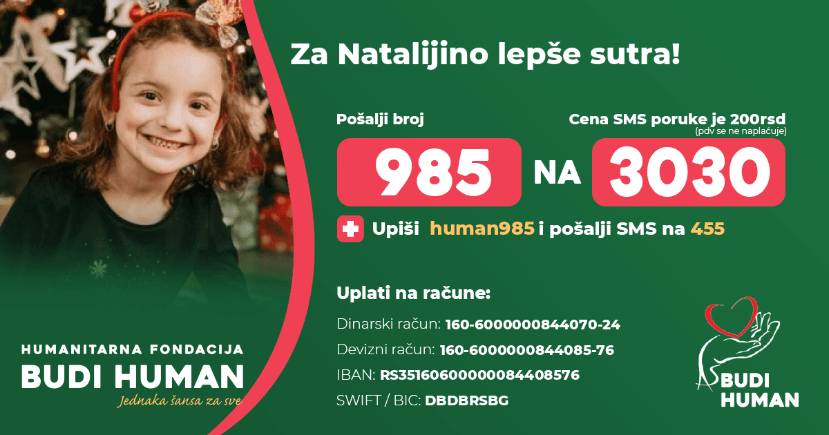 Za Natalijino lepše sutra! Budimo humani!