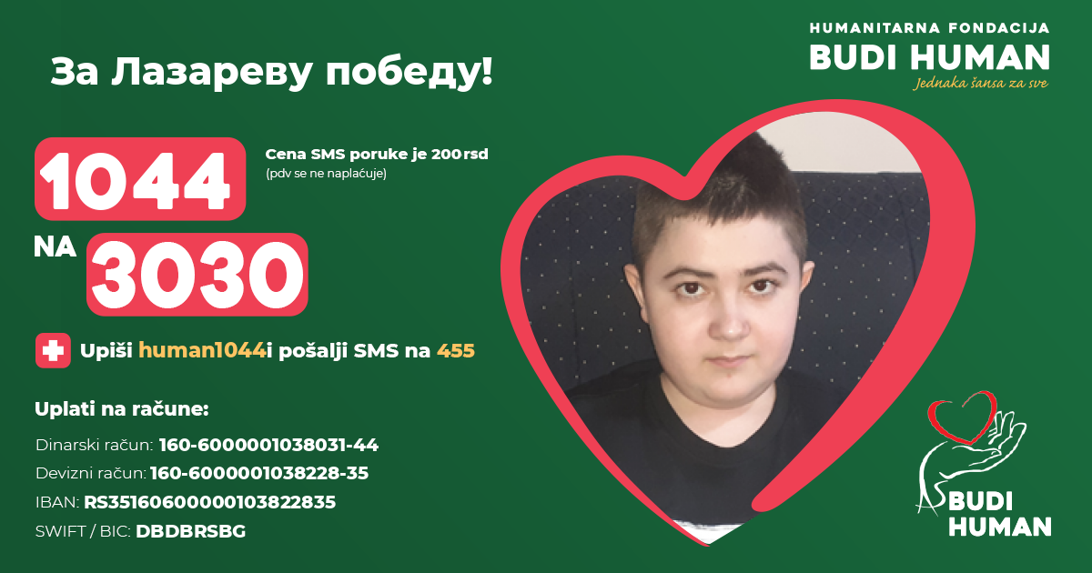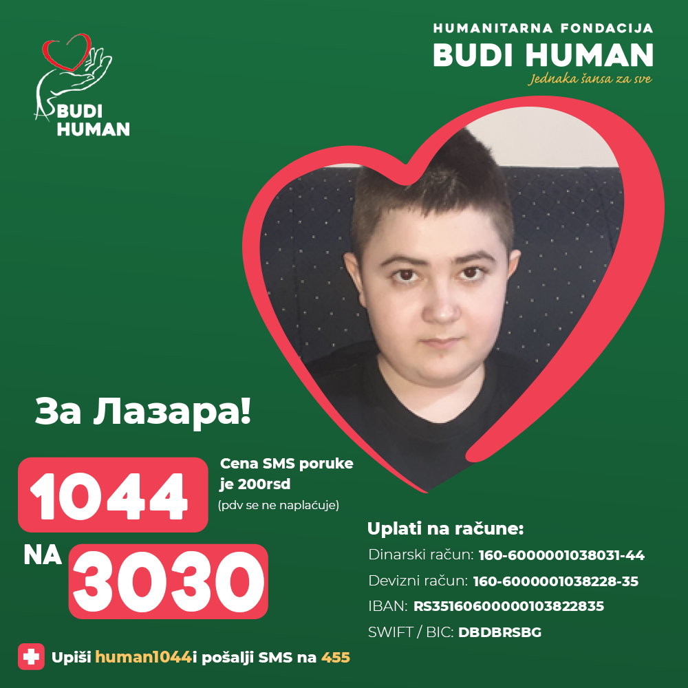 Мајка се обраћа свим хуманим људима да им помогну како би Лазар прикупио средства за лечење и зауставио прогресију болести.