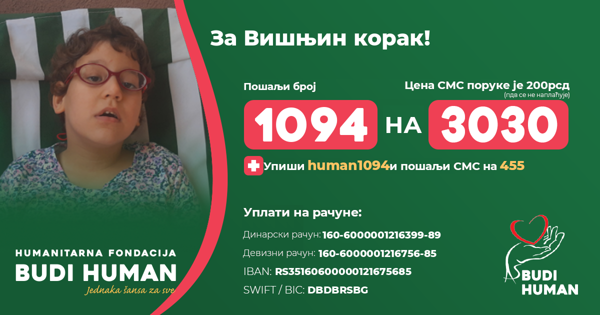 За Вишњин корак! Будимо хумани!