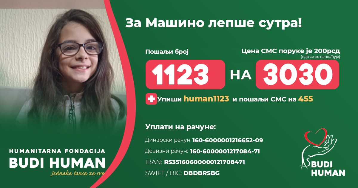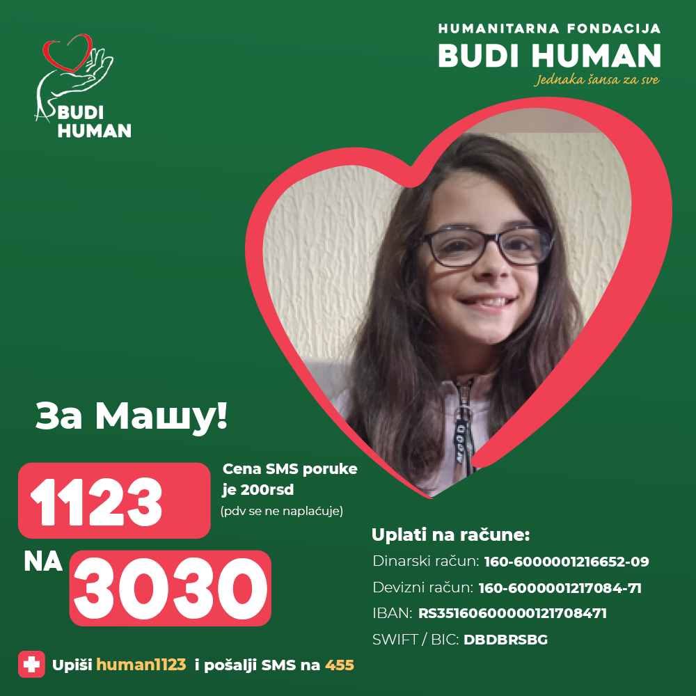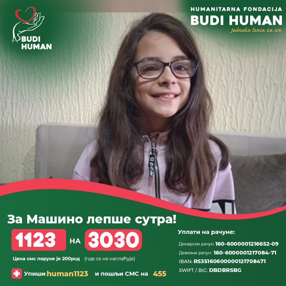 Маша је весела и насмејана девојчица која сада треба помоћ свих нас како би отпутовала у иностранство на операцију.