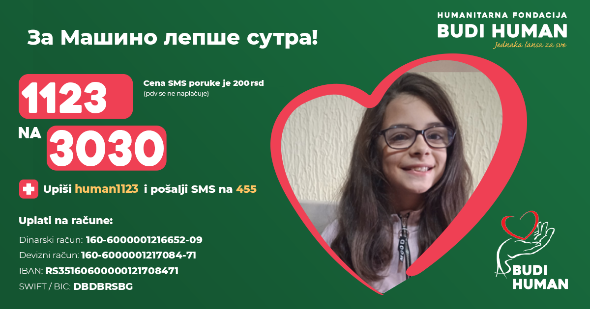Тражењем најбољег решења за своје дете, родитељи су дошли до лекара који им  гарантује опоравак који ће јој олакшати свакодневне животне активности. Маша треба да оде у Русију, град Калуга у Очну клинику Фјодоров где би је оперисали.