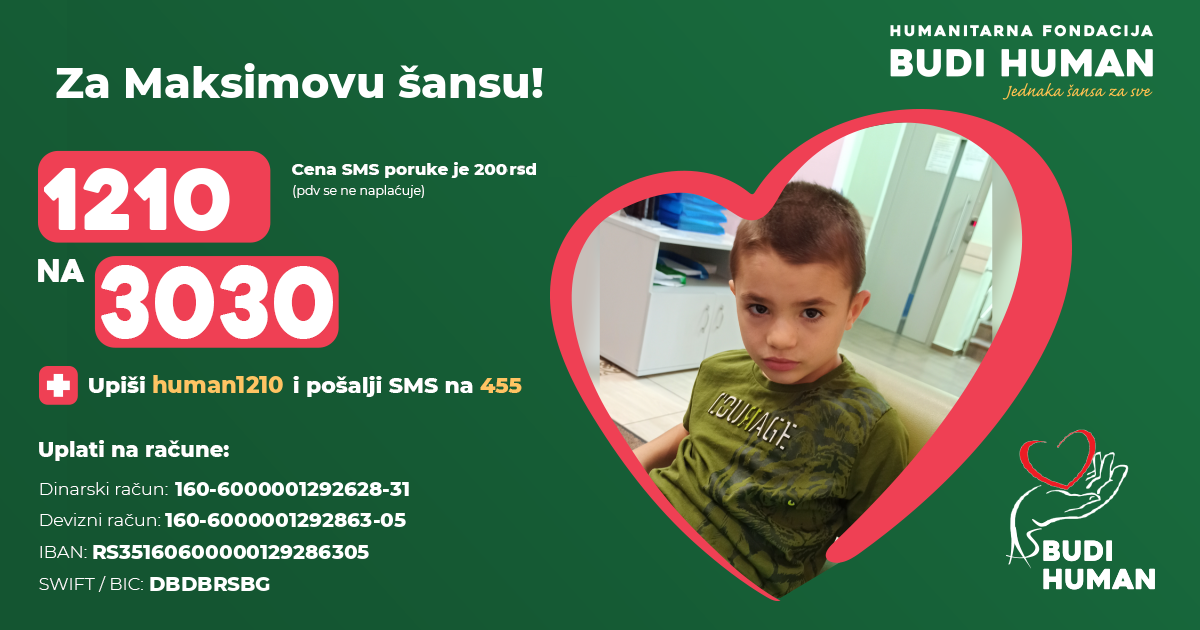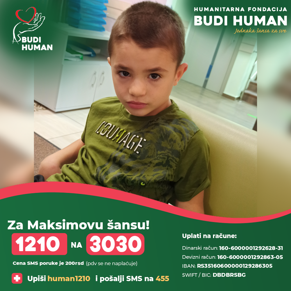 Дајмо Максиму шансу да оде на лечење у иностранство и побољша своје здравствено стање.