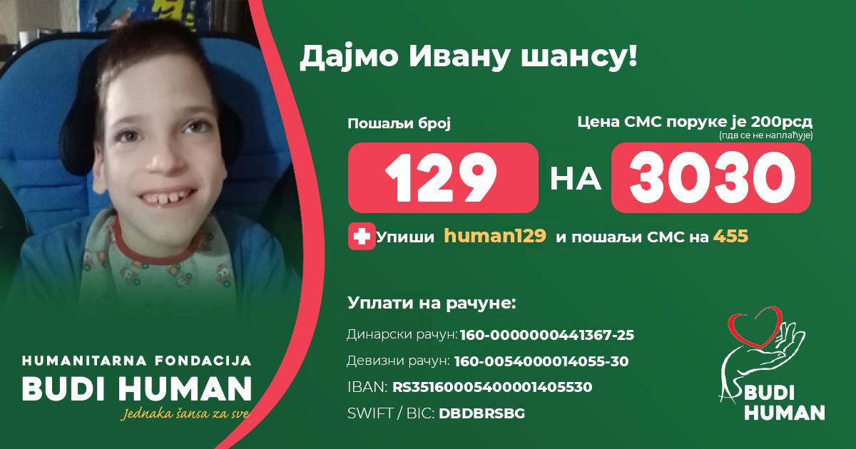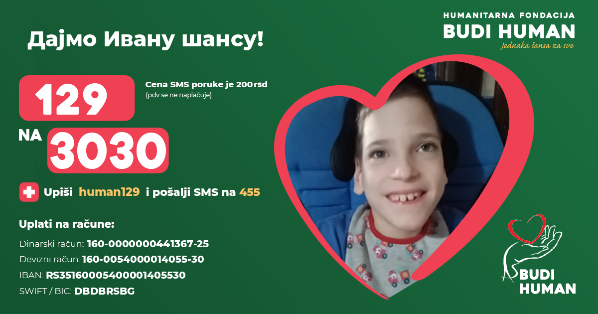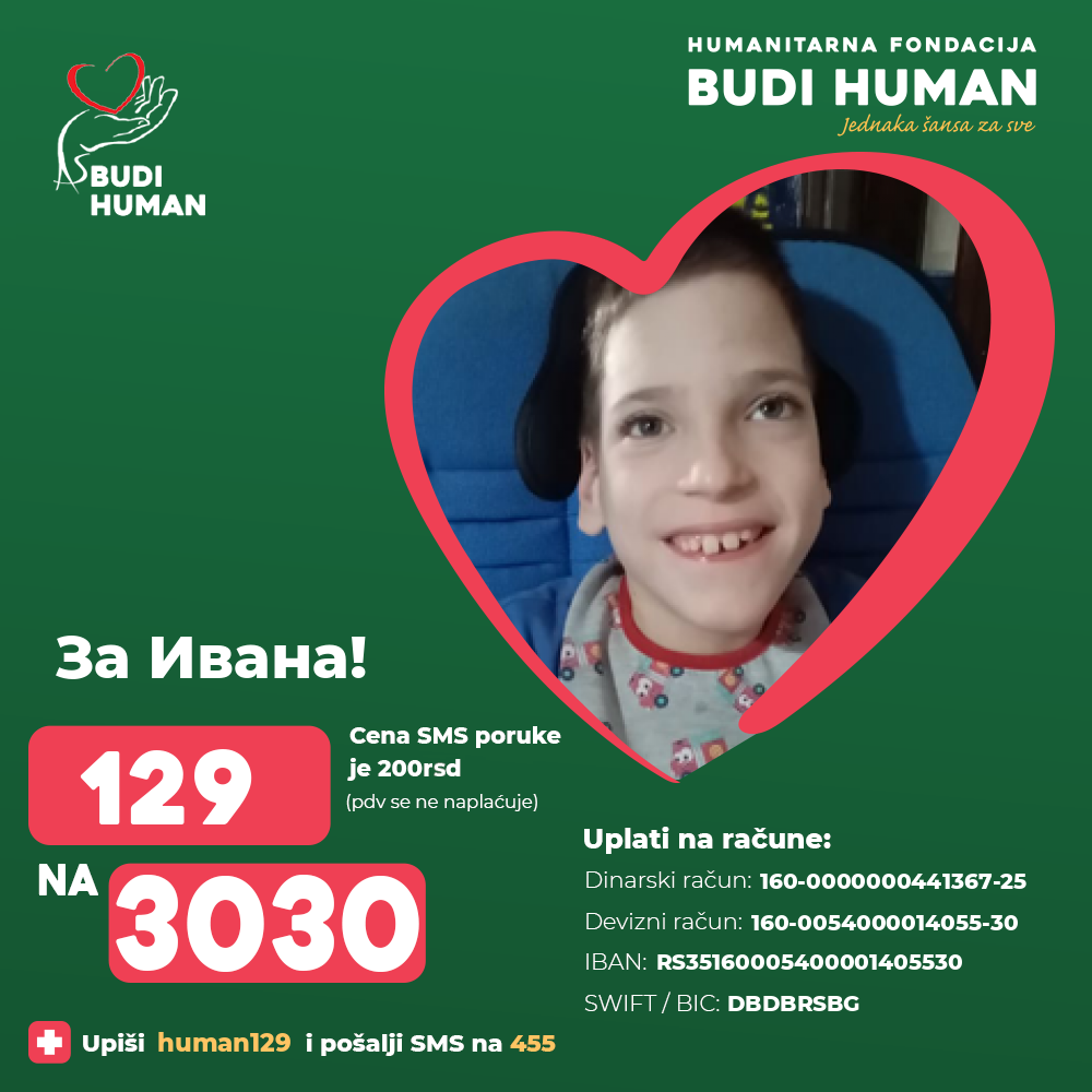 Како су све наведене терапије изузетно скупе и изван финансијских могућности Иванове породице, молимо све који могу да Ивану пруже помоћ.