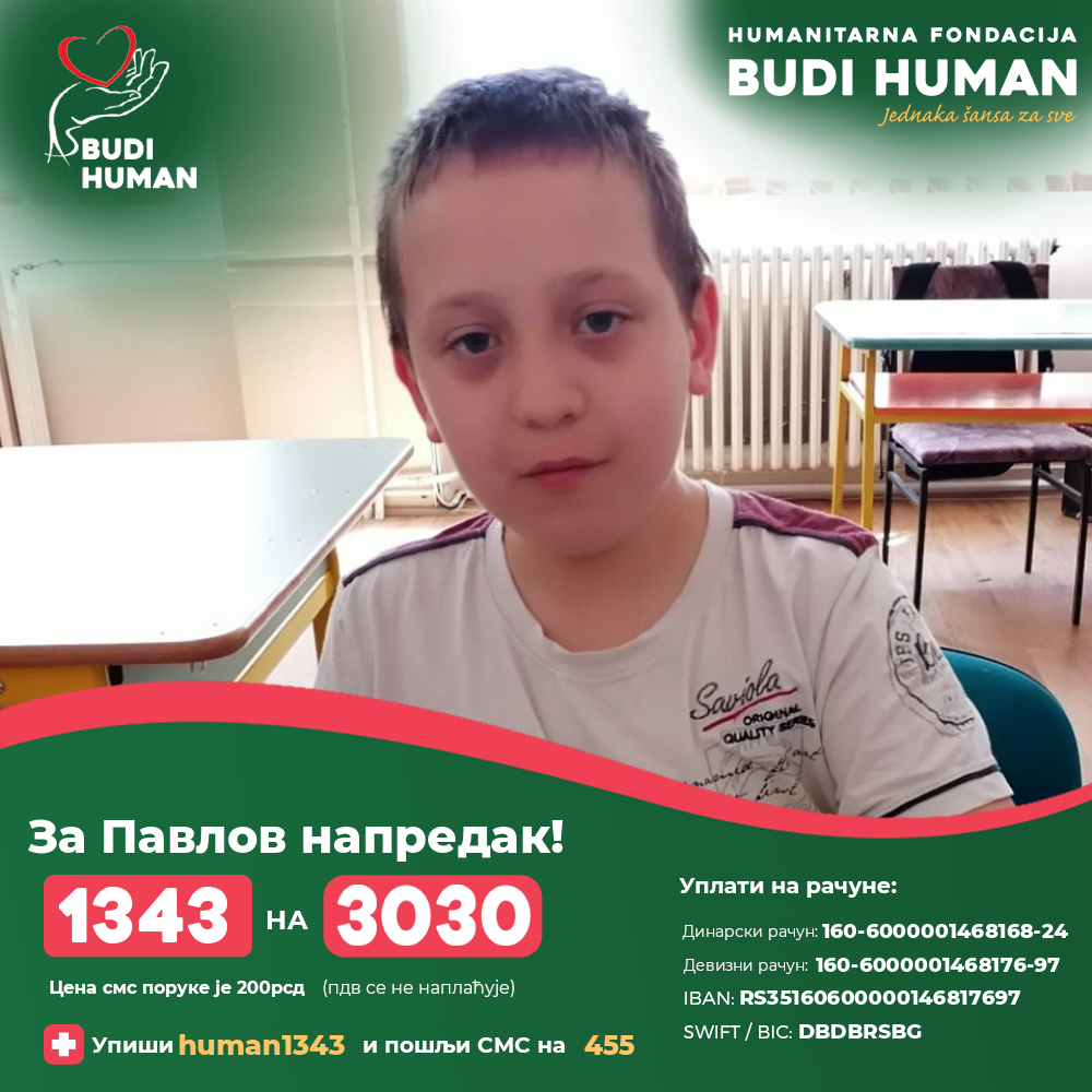 Породица је до сада лечење финансирала сама и исцрпела све ресурсе па позива све људе добре воље да помогну како би Павле наставио са терапијама.