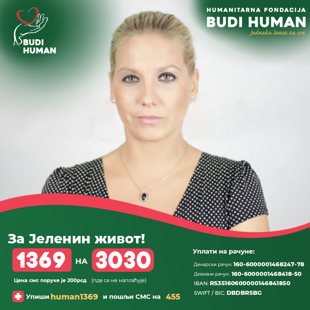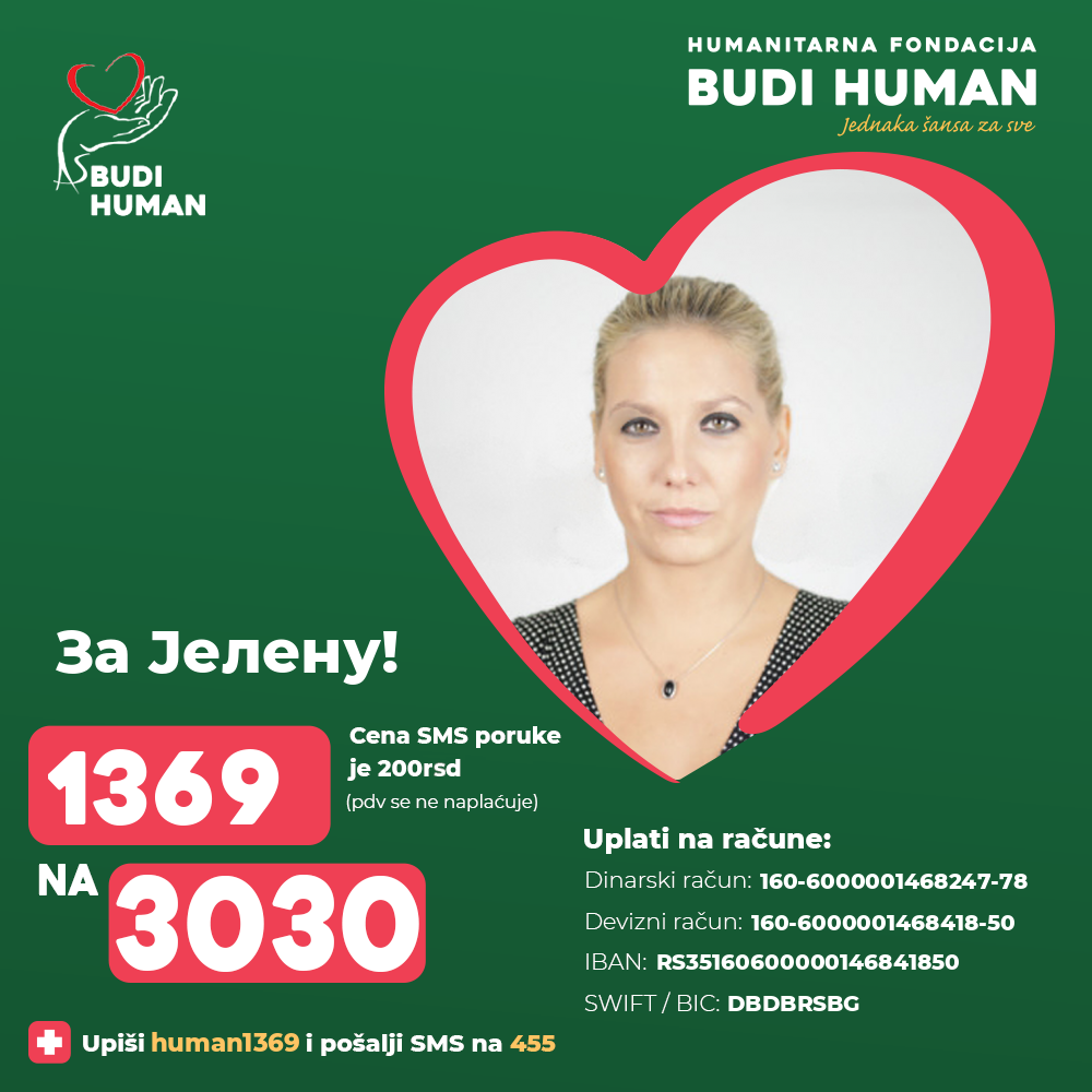 Како би ова по природи веома весела жена, мајка двоје деце чијег сваког тренутка одрастања жели да буде сведок и активни учесник, успела у својој намери да се у потпуности излечи, потребна јој је помоћ свих људи добре воље.