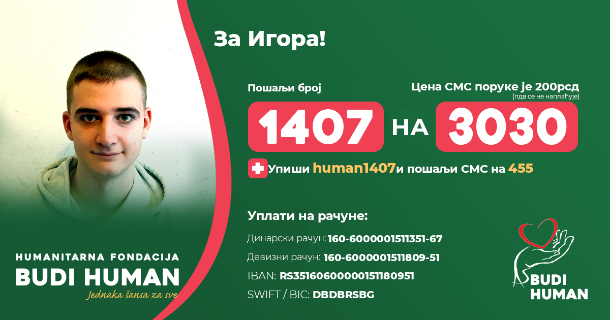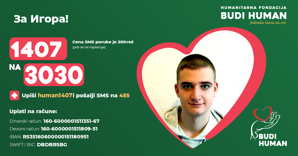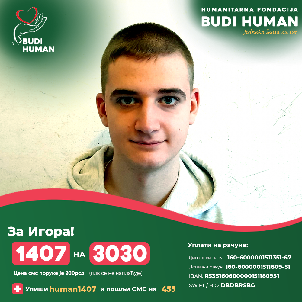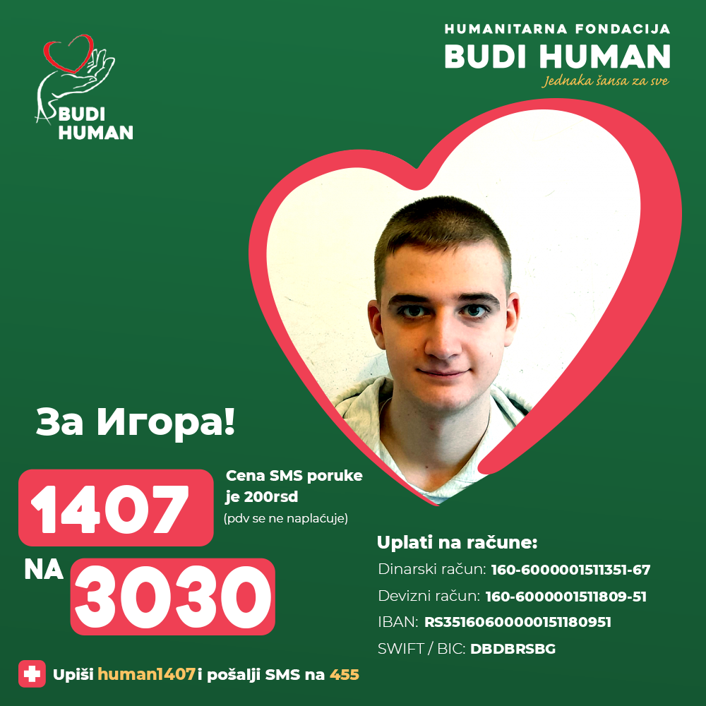 Породица моли све људе добре воље да својим донацијама помогну како би се Игорово здравствено стање поправило.
