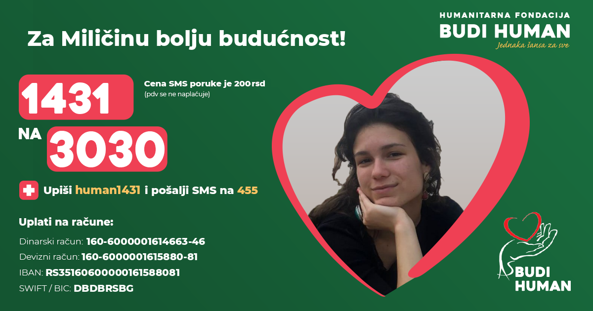 Овај вид лечења изискује велику суму новца па се породица обраћа свим хуманим људима да им помогну својим донацијама како би Милица што пре наставила лечење.
