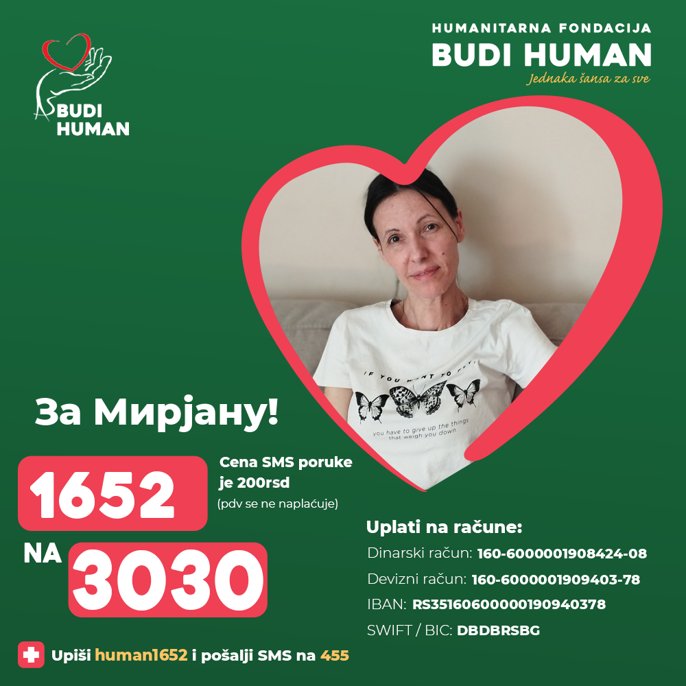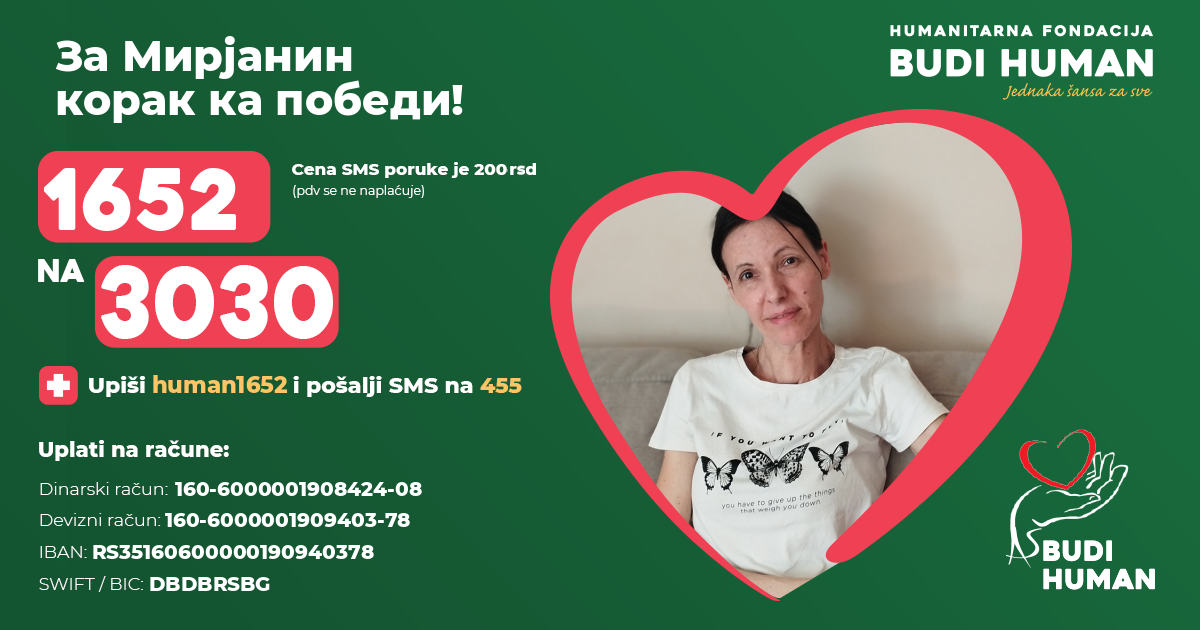 За Мирјанин корак ка победи! Будимо хумани!