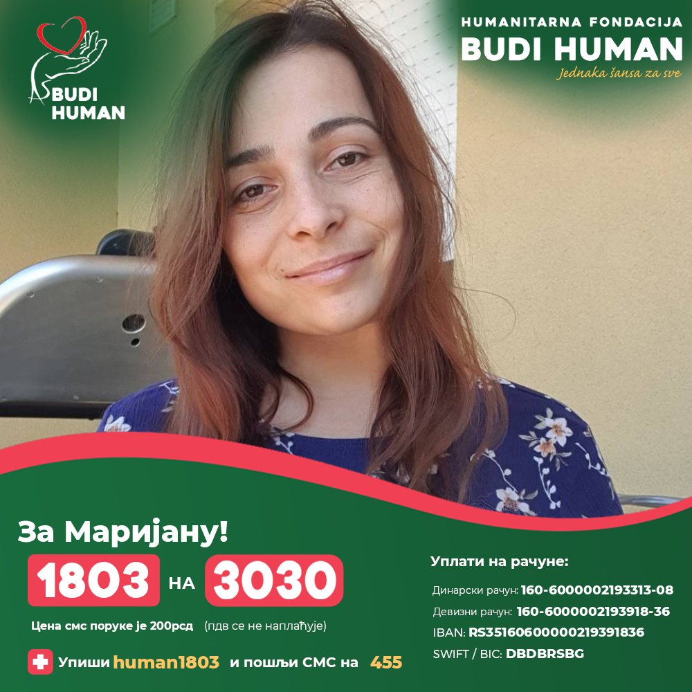 Маријана се креће само уз помоћ ходалице. Ван кућних услова принуђена је на коришћење пелена.