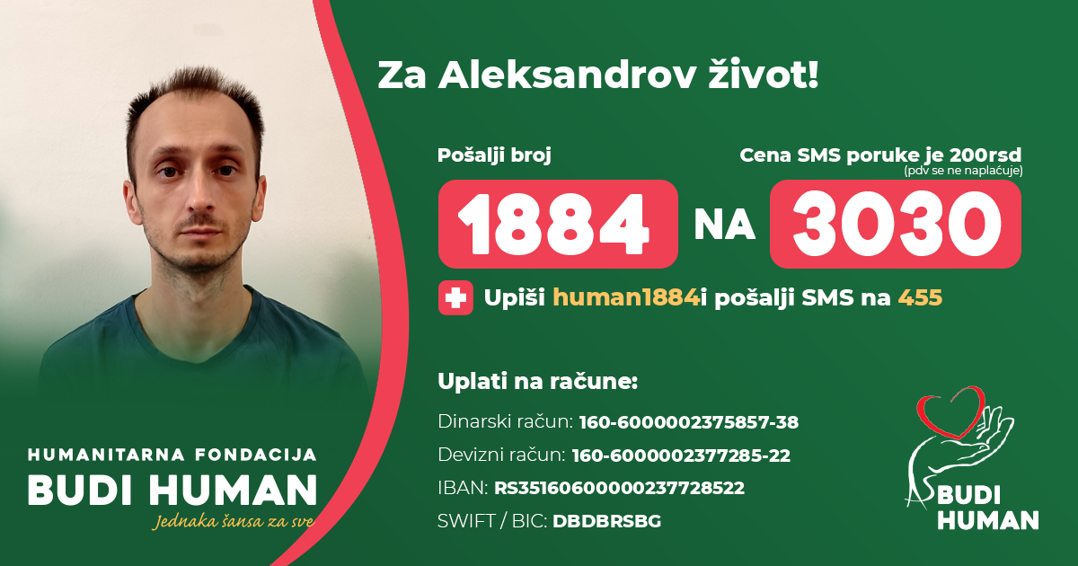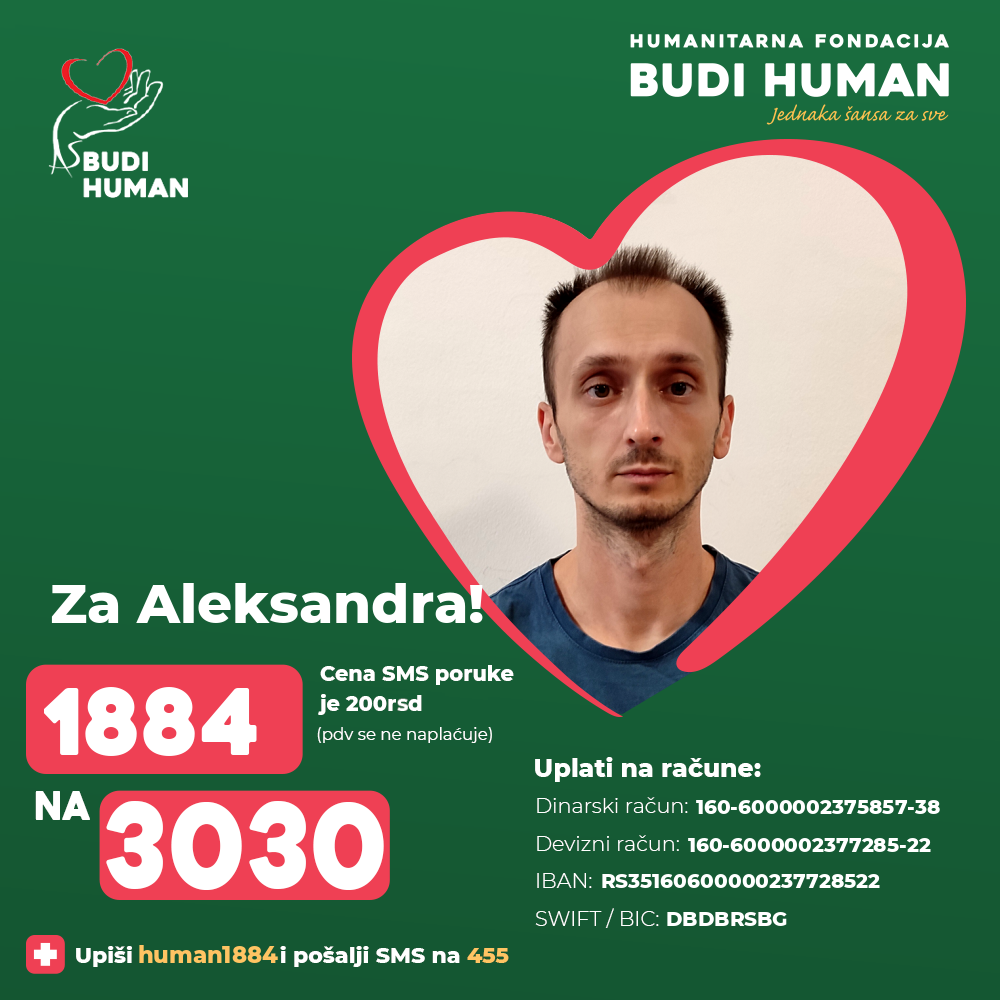 Потребна је помоћ у виду донација свих добрих људи како би Александар што пре прикупио потребна средства за наставак лечења.