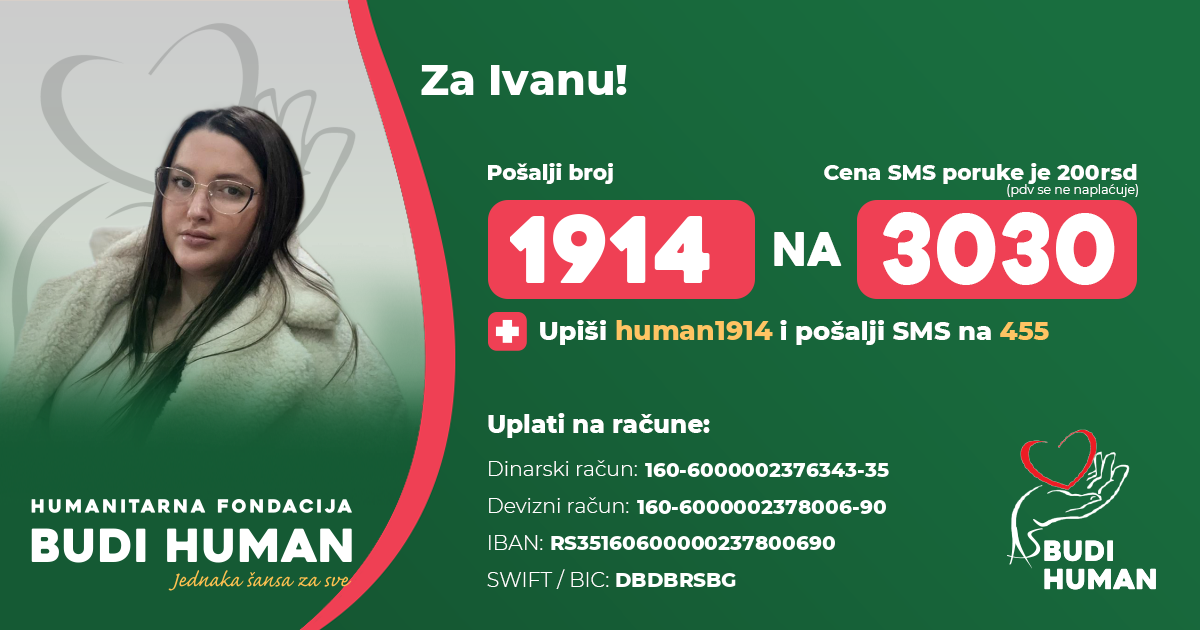 прикупља новчана средства за Ивану Живковић (1995).