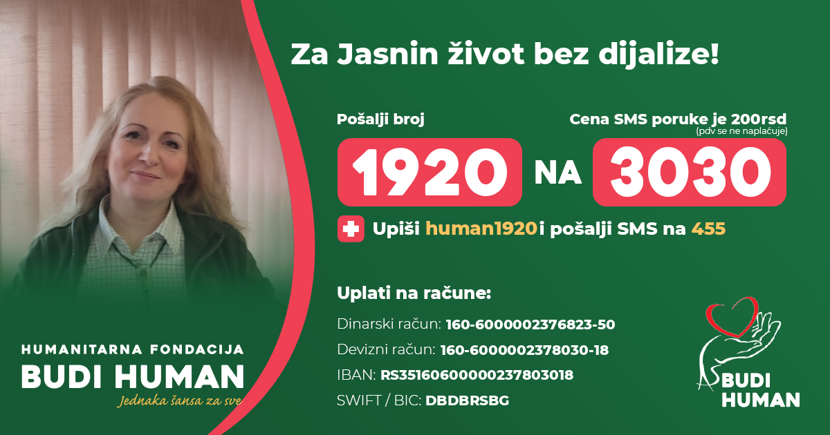 За Јаснин живот без дијализе! Будимо хумани!
