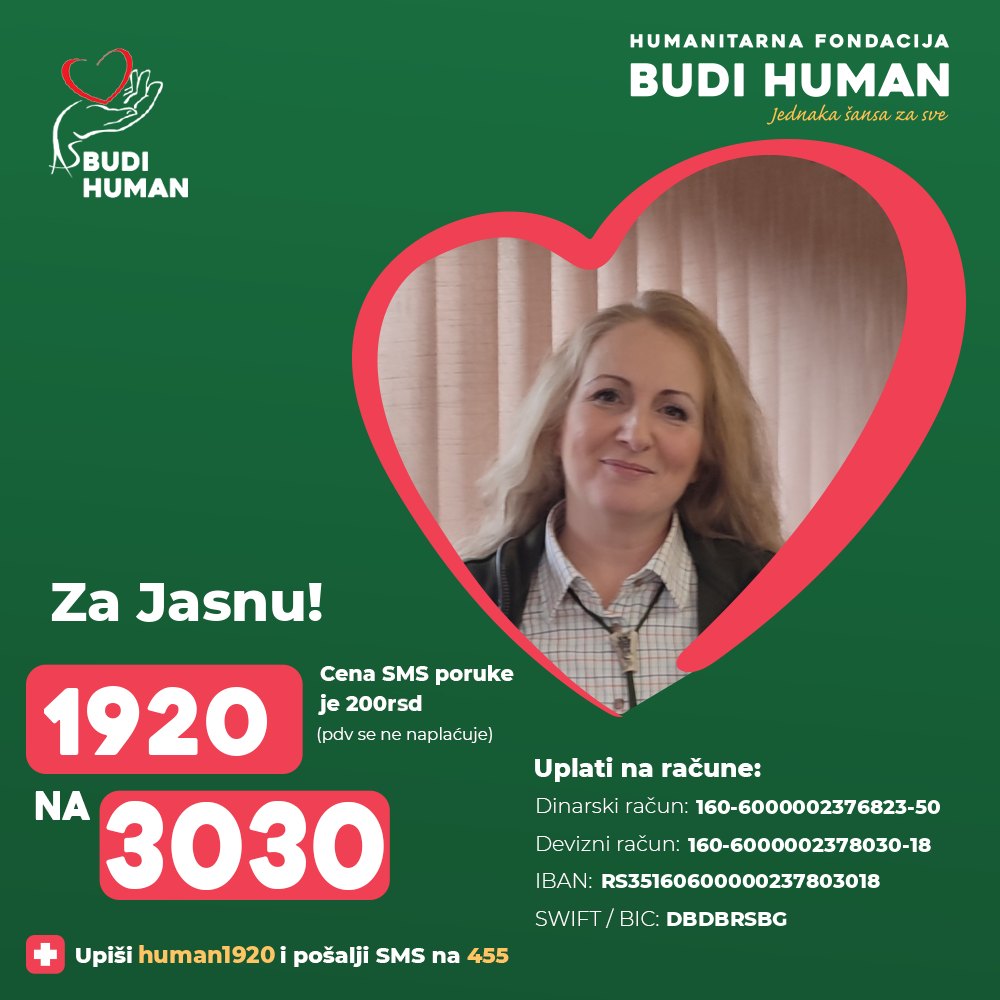 прикупља новчана средства за Јасну Стокић (1978).