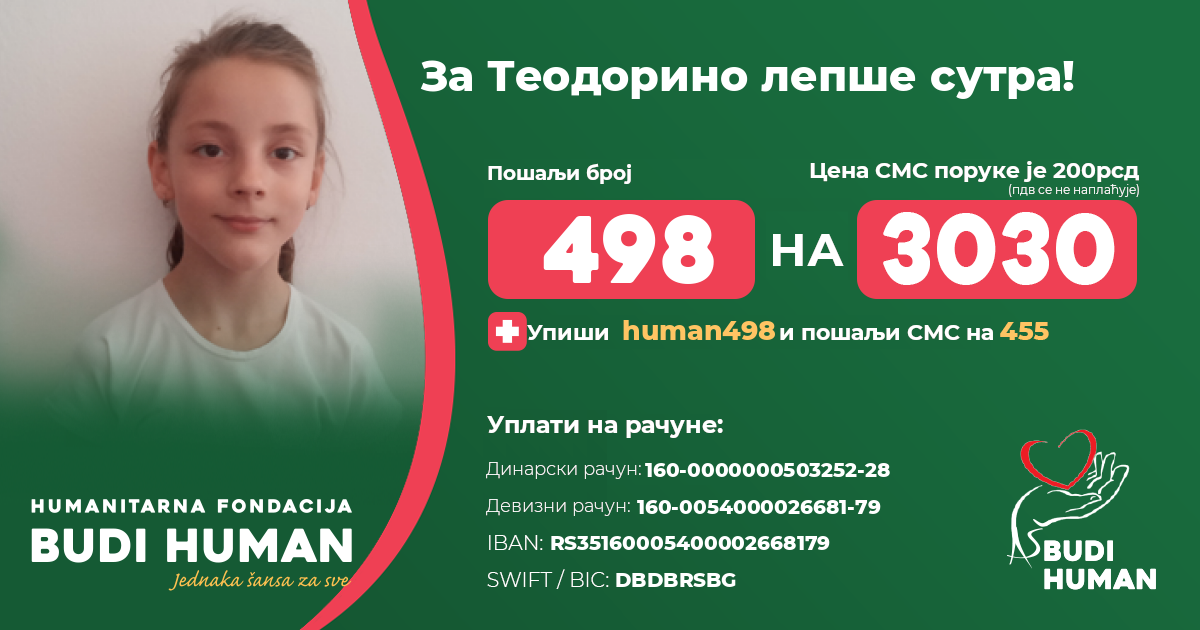 За Теодорино лепше сутра! Будимо хумани!