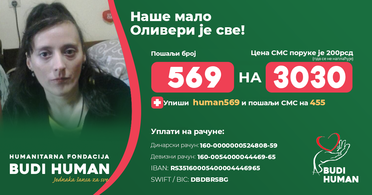 прикупља новчана средства за Оливеру Стојиљковић (1984).