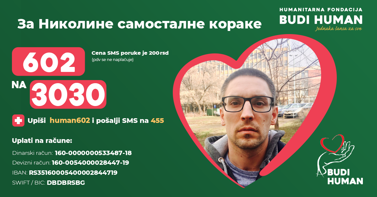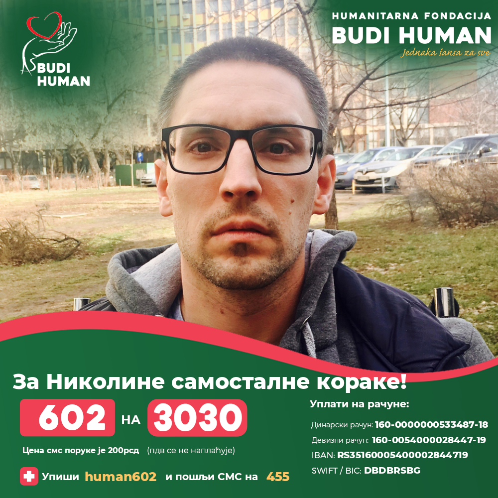 С обзиром на дужину трајања лечења и висину трошкова, који превазилазе финасијске могућности његове породице, Никола се обраћа свим људима добре воље да помогну, како би поново самостално ходао.