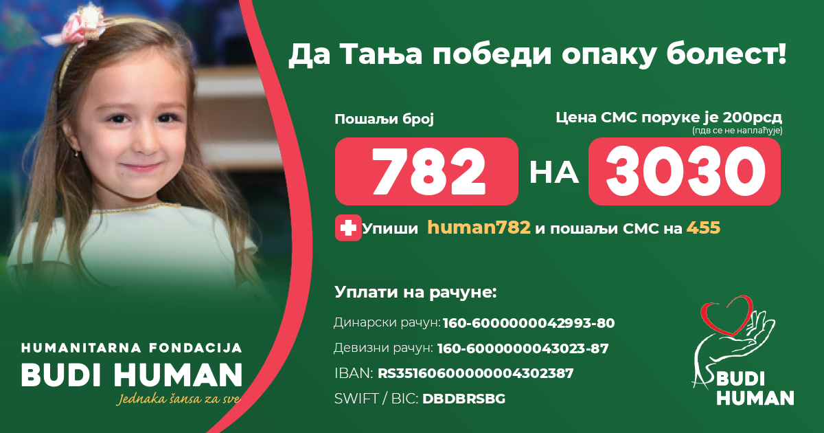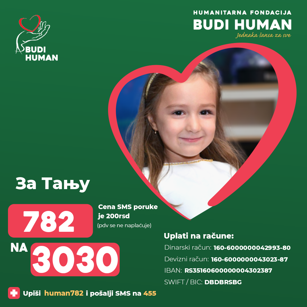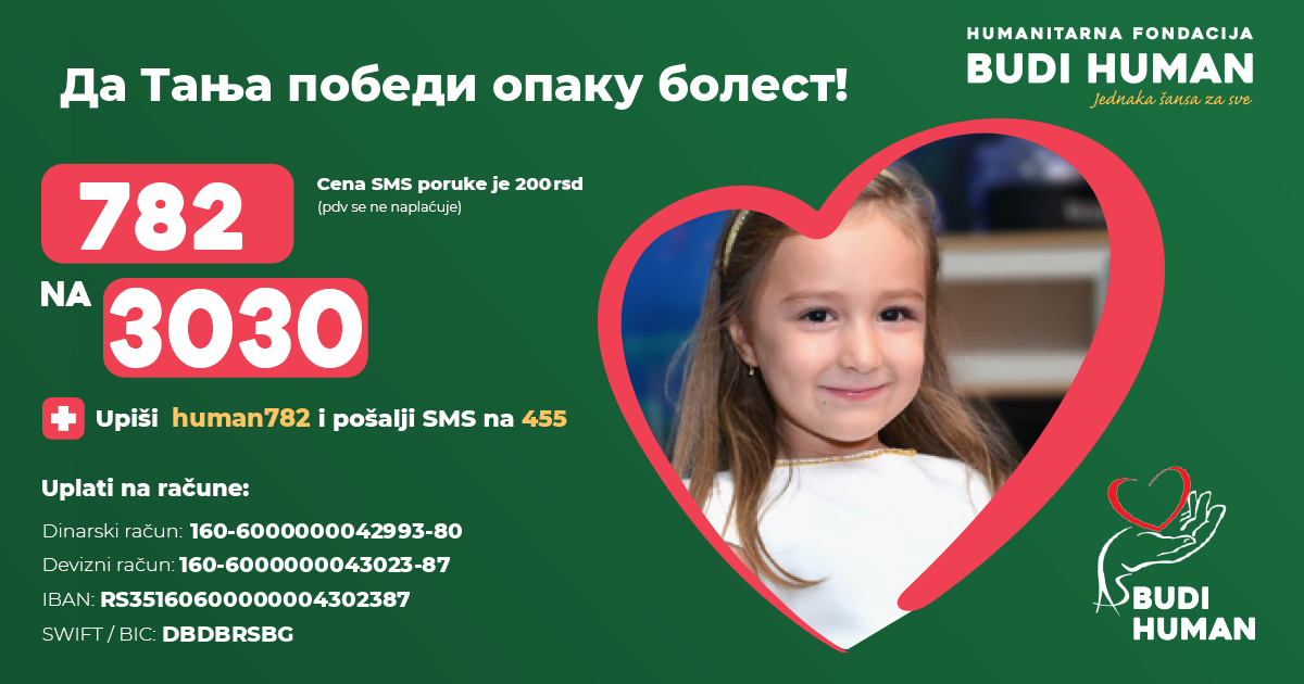 Да Тања победи опаку болест! Будимо хумани!