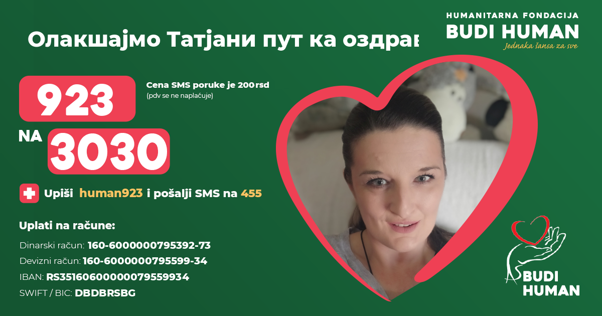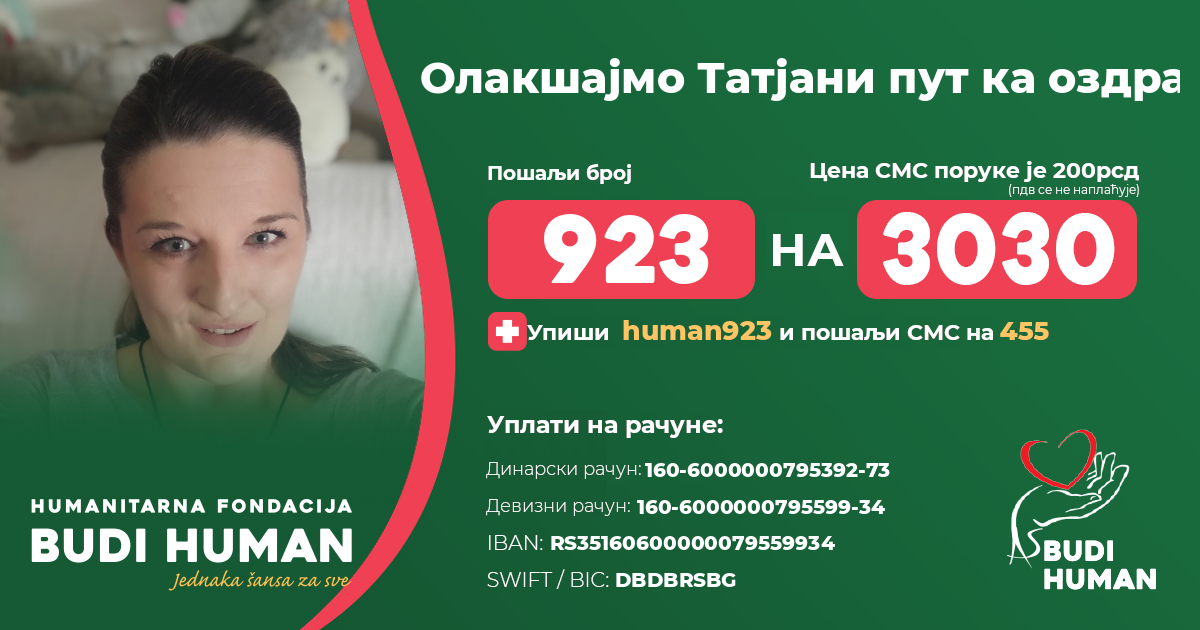 Олакшајмо Татјани пут ка оздрављењу! Будимо хумани!