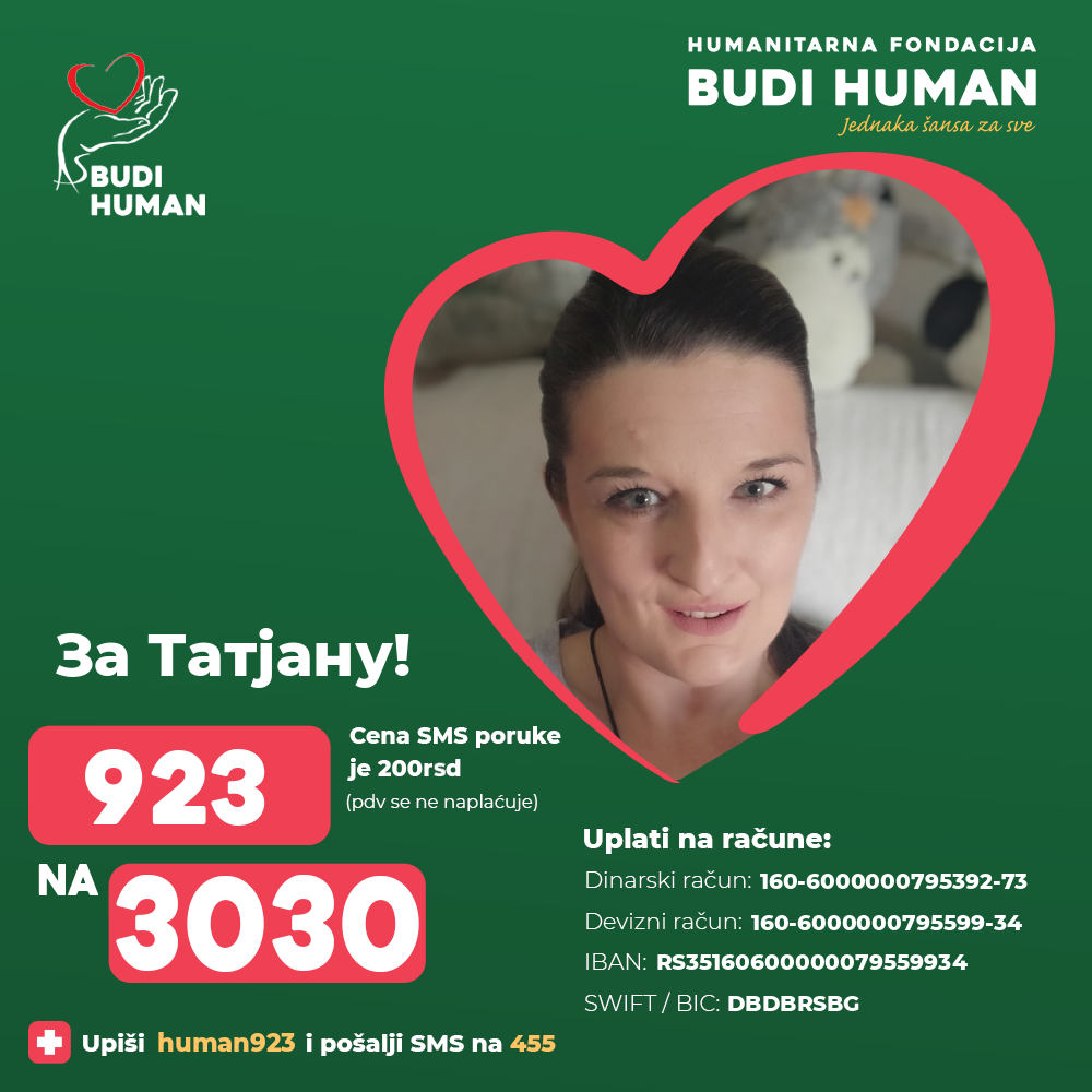 прикупља новчана средства за Татјану Мировић (1976).